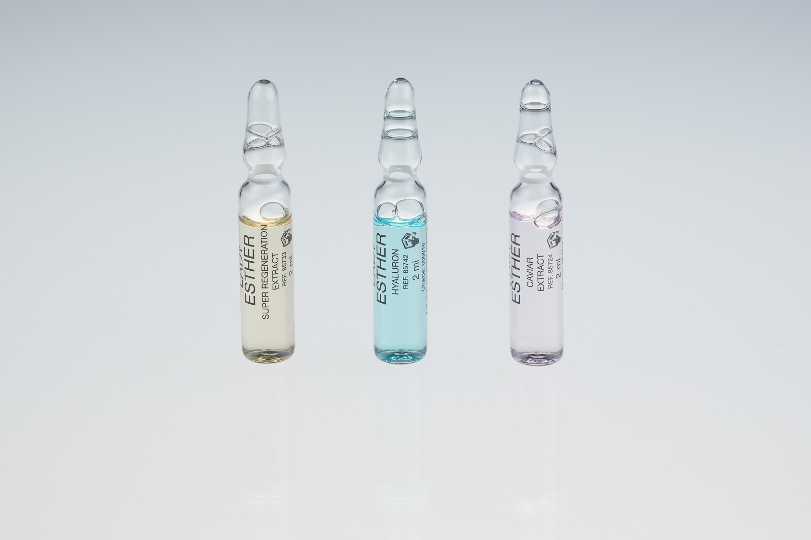 Das Spezialampullen-Set von LADY ESTHER enthält je 1 x: Super Regeneration Extract 2 ml · Caviar Extract 2 ml · Hyaluron 2 ml